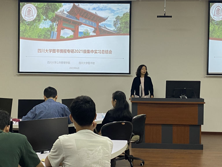6月24日上午,2021级图书情报全体同学在工学图书馆202进行了实习总结汇报。首先,四川大学图书馆姜晓老师、公共管理学院图书情报专硕负责人范炜老师对此次集中实习进行了简要回顾。接下来,分别由在图书馆特色资源中心、资源建设中心、知识服务中心、研究发展中心实习的同学依次作总结汇报。汇报完毕后,4个部门老师分别给出了评价与总结。