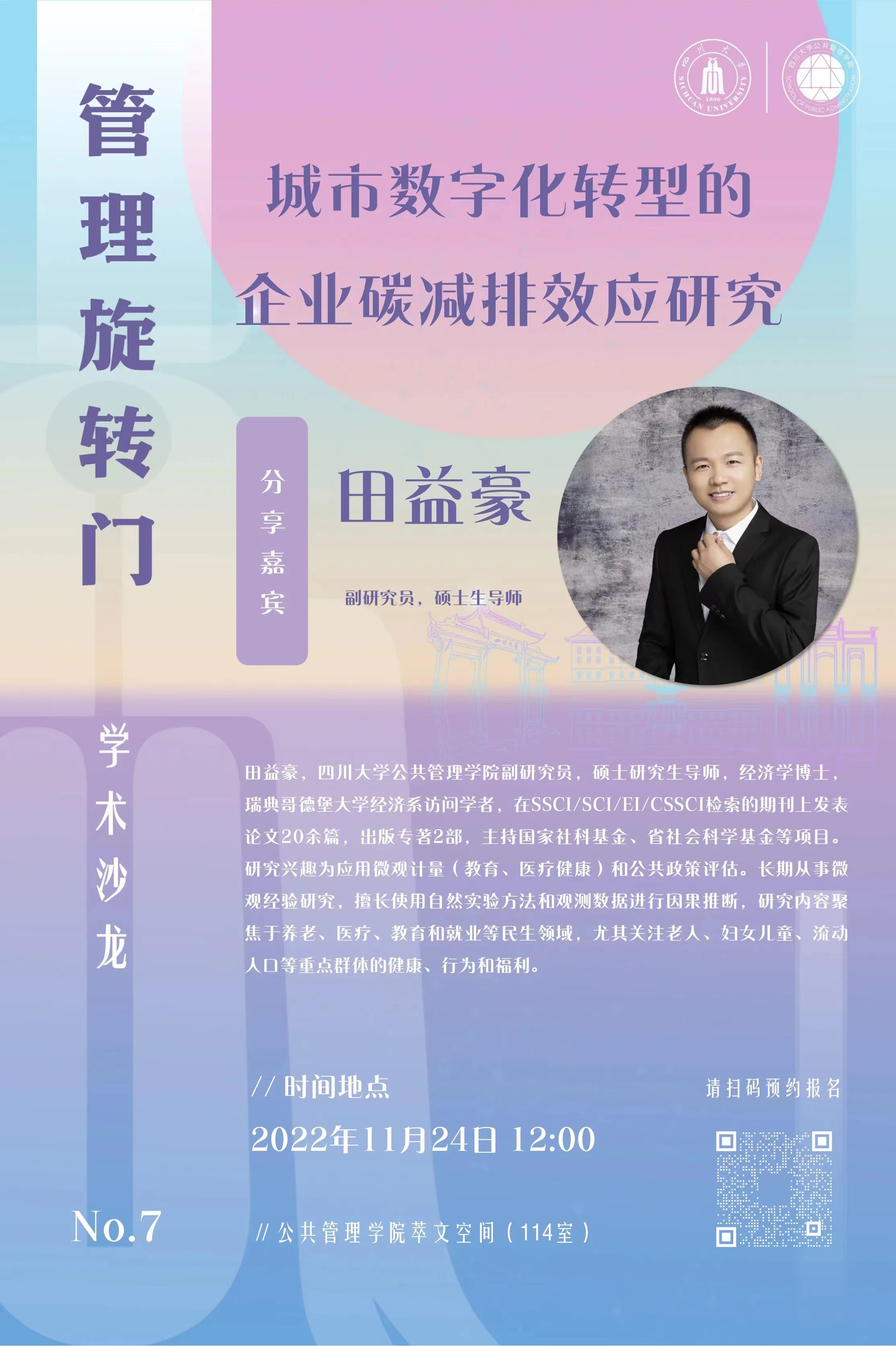 “管理旋转门”学术沙龙第七期|田益豪:“城市数字化转型的企业碳减排效应研究”
