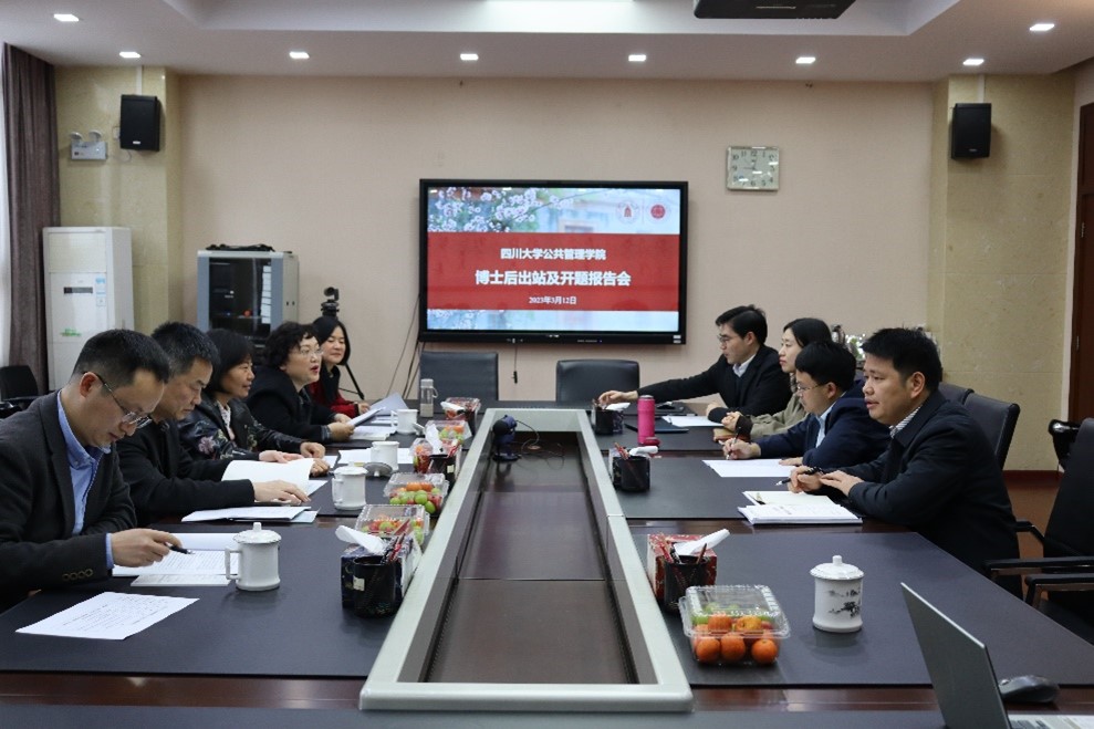 3月12日,我院公共管理博士后流动站在四川大学干部教育培训基地200会议室顺利举办了2023年春季公共管理博士后出站报告会和开题报告会。流动站诚挚邀请西华大学边慧敏教授担任专家组组长,四川省社会科学院陈井安研究员、合作导师姜晓萍教授、学院李强彬教授和罗亚玲教授出席了本次报告会,部分博士、硕士研究生参与旁听。
