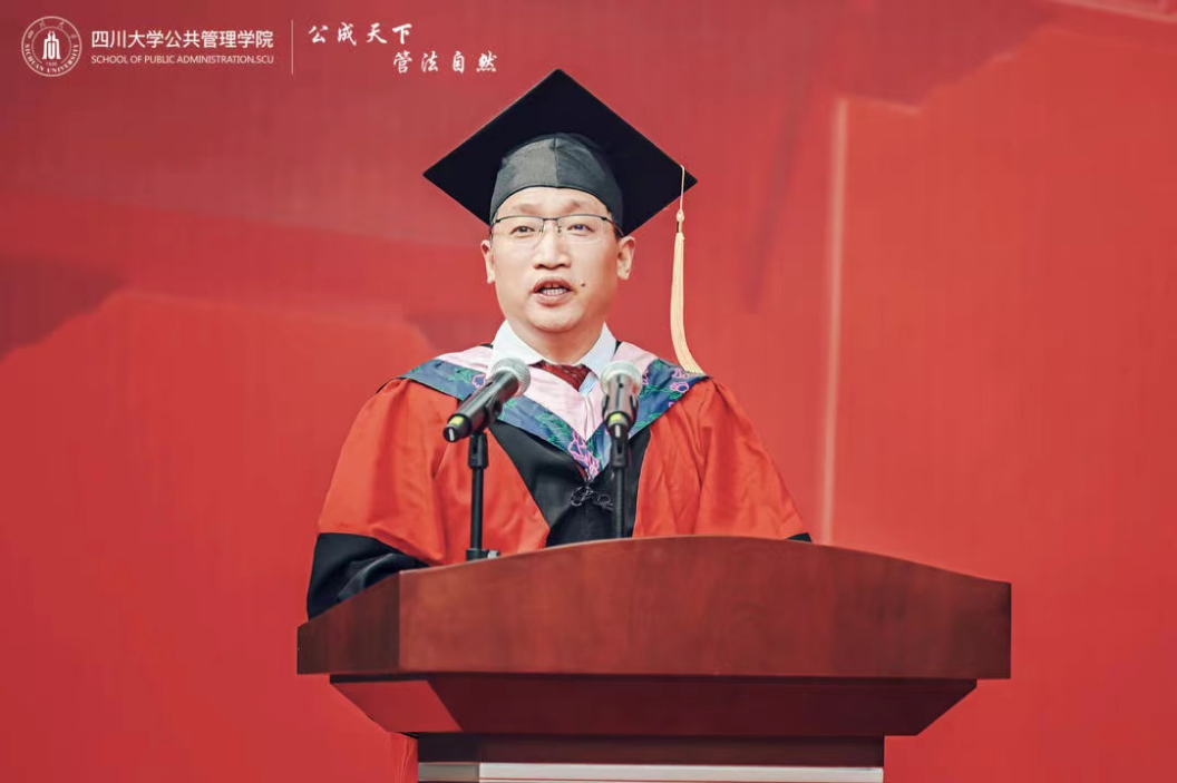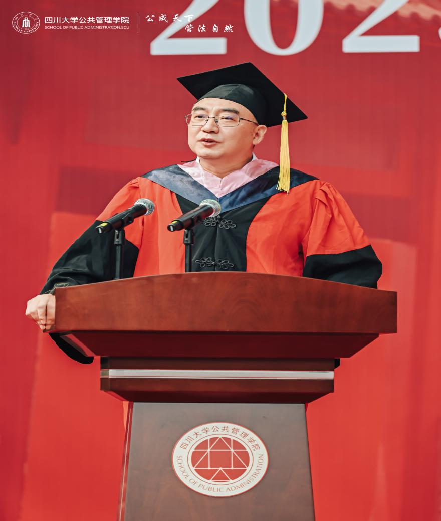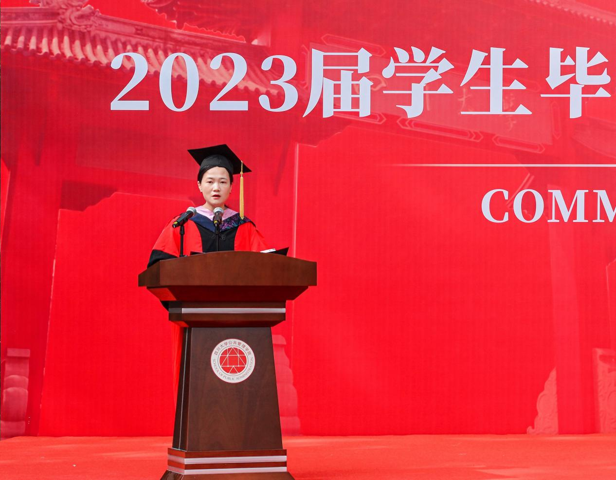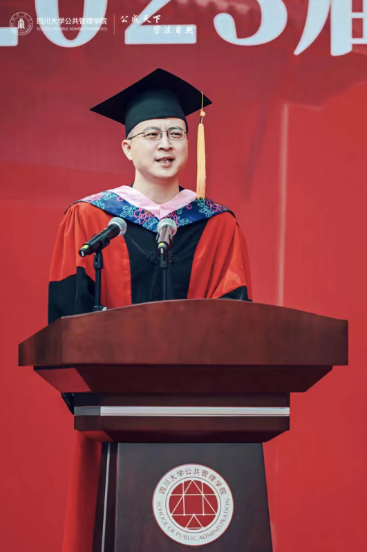 赴热爱,骥驰四海。6月18日上午9:00,公共管理学院2023届学生毕业典礼暨学位授予仪式在望江校区萃文楼前广场举行,学院领导班子、教授委员会代表、各系(科室)教师、校友代表、家长代表以及2023届全体毕业生参加。此次典礼由学院党委书记韩杰主持。
