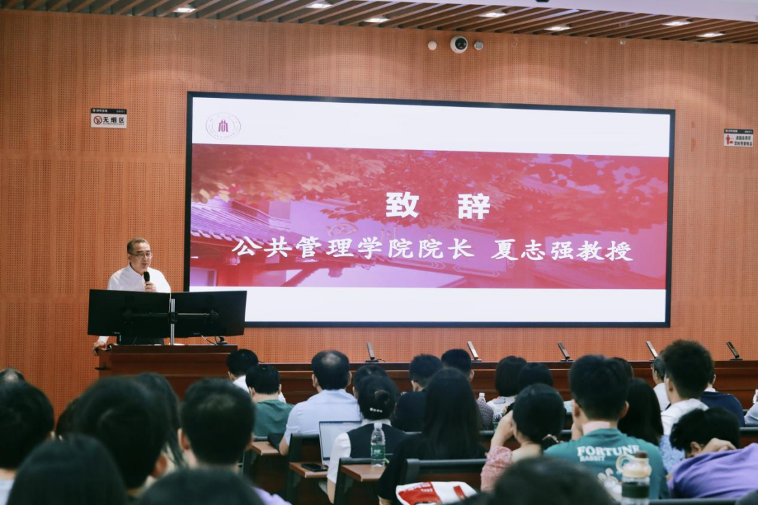 最后,公共管理学院夏志强院长总结发言。夏院长以“研究生是从事研究工作的先生”为切入点和同学们畅谈了研究生的身份定位和角色转变问题。他鼓励同学们立大志、求真知、做学问、务实际,希望公管学生坚持以人民为中心,以推动国家和社会发展为己任的理想和信念,成为追求卓越的创新者,在踔厉奋发、笃行不怠中书写无悔青春。
