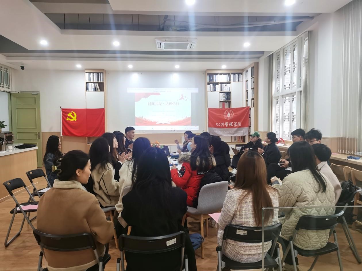 12月8日上午,四川大学公共管理学院与电子科技大学公共管理学院博士研究生党支部在四川大学望江校区萃文楼114室举办了“同频共振 达理悟行”联学共建活动,双方支部委员和20余名党员就博士研究生党支部建设和专业学习进行了深度交流。活动由四川大学公共管理学院博士研究生第一党支部书记李岚主持。