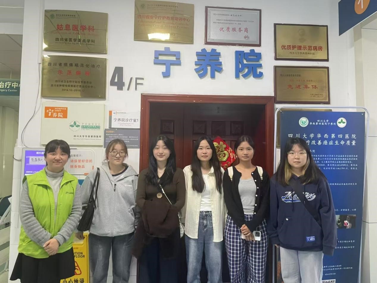 10月24日,我院《死亡与关怀的社会学思考》课程的8位同学在贾艳皊老师的带领下,走进华西第四医院李嘉诚宁养院,开展了一次别开生面的课外实践活动。此次活动旨在让同学们深入了解安宁疗护这一特殊而重要的医疗服务,更直观地体会生死教育。