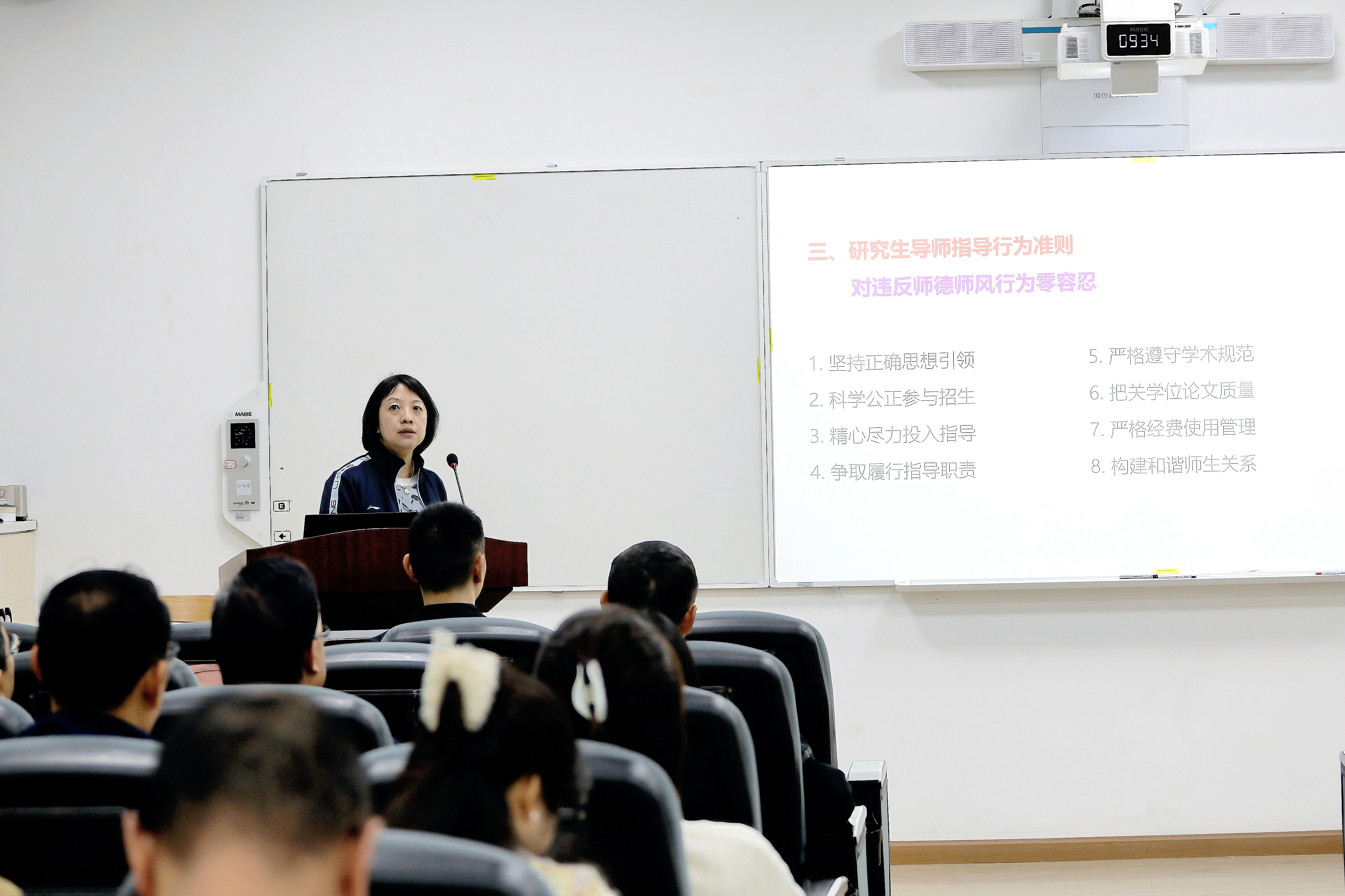 为全面贯彻落实全国教育大会精神,加强研究生导师队伍建设,规范导师指导行为,4月29日上午,我院在萃文楼105室举行了2025年度“立德树人,协同育人”研究生导师培训会。学院领导班子成员、研究生导师及教学管理科老师参与此次培训,会议由范逢春副院长主持。