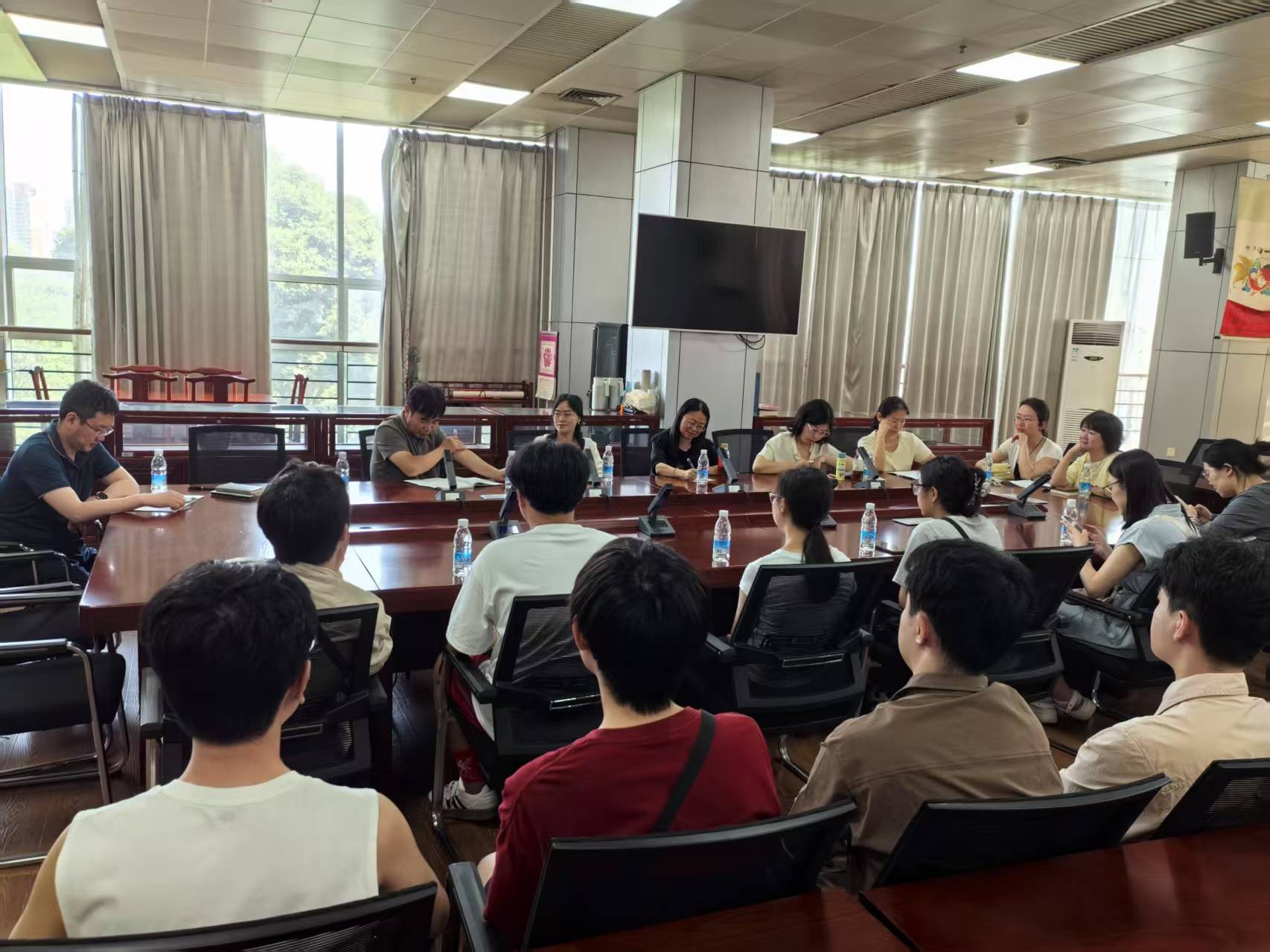 参观结束后,同学们前往图书馆内的报告厅,与馆内老师们开展交流座谈。采编部欧阳品山老师详细介绍了书籍采购标准及图书荐购平台;学科服务部张欢老师全面讲解了图书采编流程、检索系统的使用、文献检索培训以及学科知识库等内容。同学们积极参与并踊跃发言。