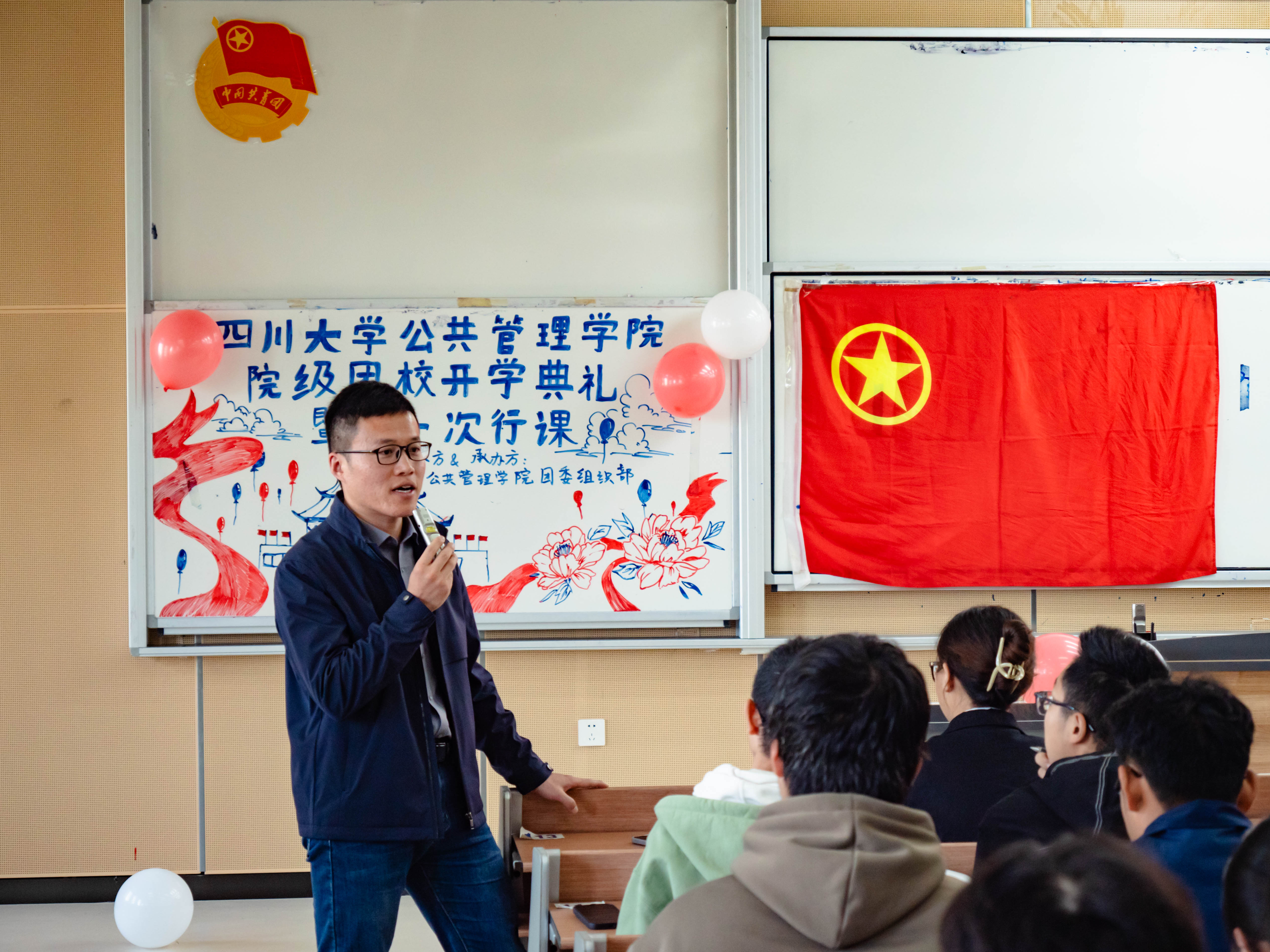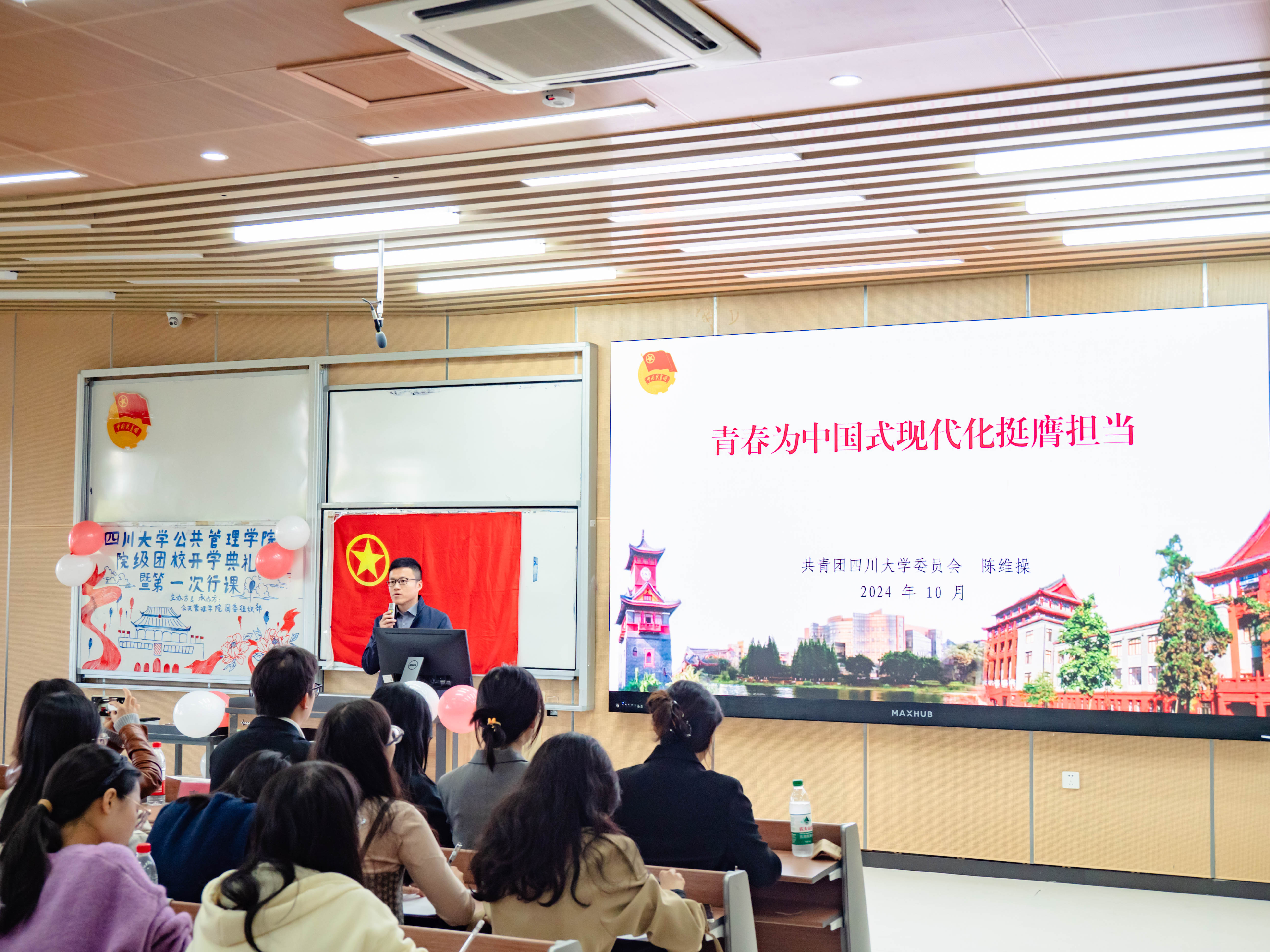 为深入学习宣传贯彻党的二十届三中全会精神,促进团员青年全面发展,10月27日上午,公共管理学院2024-2025学年院级团校开学典礼暨第一次行课在江安校区综合楼C座307教室举办。校团委书记陈维操担任本次团课主讲老师,学院团委书记青杨媚等260名师生参加了团课学习。