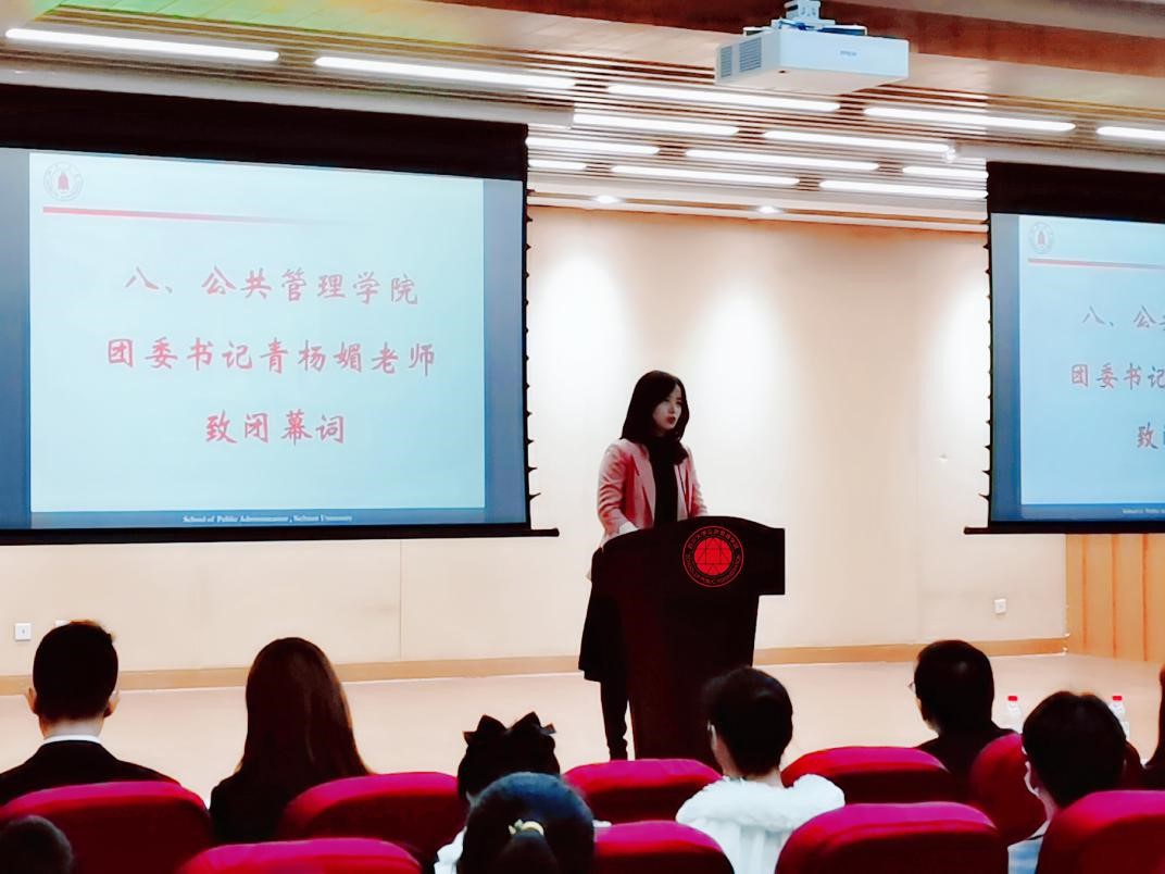 图四:团委书记青杨媚致闭幕词
