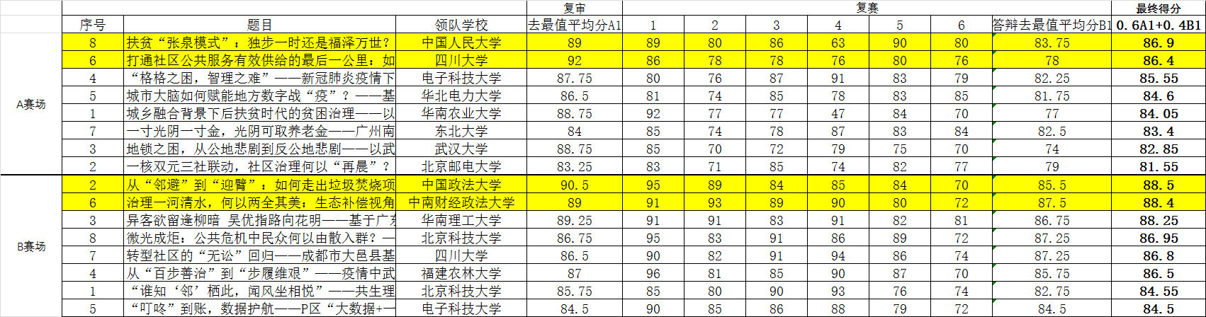 复赛16支队伍的案例分析报告成绩以及现场答辩成绩