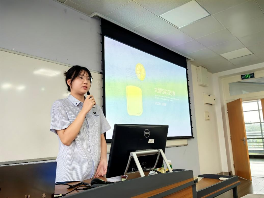 最后,兰台研习社的孙雨轩同学分享了自己在大学生创新创业项目与实习过程中的经验和心得,她首先分享了创业与创新的区别与联系,介绍了她负责的大学生创新创业项目的经历,她将项目分为前期研究、后期研究、结项等阶段。此外,孙同学也分享了她在中国建设银行人事部的工作经历。