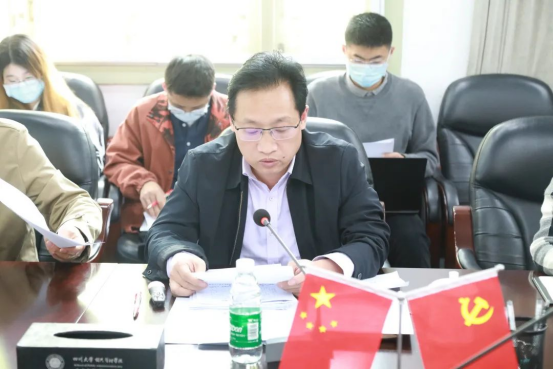 韩杰书记就开展2022年党风廉政教育宣传月活动,对标对表《四川大学2022年全面从严治党工作要点》及《四川大学关于开展2022年党风廉政教育宣传月活动的通知》的具体要求,介绍了我院研究制定的实施方案。