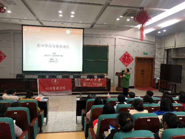 在柳州期间,招生工作组有的放矢,分别针对学生与家长进行了招生宣讲。马缨特聘研究员作为我院2018年引进的高端人才,以《高中学习与快乐成长》为主题,以社会学专家的独特视角,深入浅出,就高中生有效学习与健康成长、高中大学有效衔接、大学学习特点等问题,和与会师生及学生家长进行了分享与互动,获得在场师生与家长的高度认可;周锐老师围绕四川大学办学特色、综合实力、人才培养、就业升学等重点内容对四川大学及公共管理学院进行了详细介绍,并就我校在广西历年的招生政策进行了详细解读。