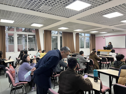 王院长与学生一起听课,课程:文献保护学,授课教师:赵跃