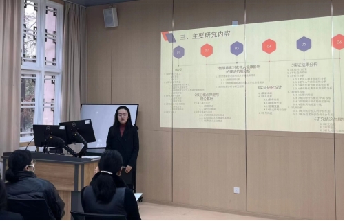 此次预答辩分为学生陈述和老师点评两部分。各组同学按照答辩顺序,依次对自己论文的研究背景、理论基础、研究方法、研究思路以及研究结论等进行总结性陈述。评委老师们进行了专业点评,对同学们论文的逻辑结构、概念界定、理论基础、主要内容、对策建议、写作格式等给予建议和指导。同学们认真听取并仔细记录了评委老师们提出的建议以备进一步的修改完善。最后,各组评委老师对本次预答辩进行了总结。