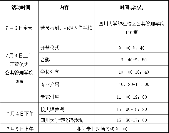 四川大学公共管理学院2024年优秀大学生暑期夏令营日程安排和注意事项
